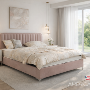 Model Montana to łóżko tapicerowane o delikatnie zaokrąglonym wezgłowiu i pionowych przeszyciach, które nadają bryle lekkości i elegancji. Smukła linia, miękka forma oraz dopracowane proporcje sprawiają, że model doskonale odnajduje się zarówno w jasnych, romantycznych aranżacjach, jak i w nowoczesnych sypialniach premium.